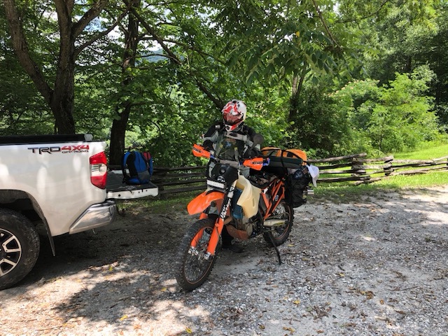 I went through four creek crossings and somehow managed to keep upright. The KTM did great and the only thing she needed was her chain tightened and some bolts double checked. I rode for 6 hours and knocked out two sections of the trail. The last portion ended in Pelham, TN, but thanks to Missy and Horace Carter, I detoured south to Sewanee and will be spending the night in their beautiful home (thank you!). I will be heading back on the trail around 9am and spend a lot more time filming tomorrow. 222.4 miles today.
