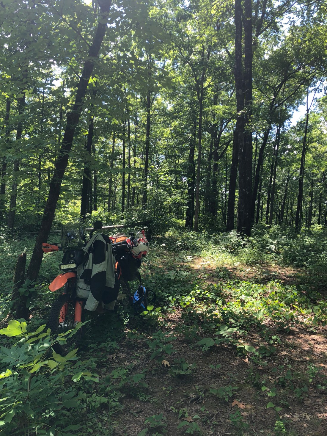 I left Clinton, AR at 9am and headed straight into the ozarks. A lot of thick gravel roads and winding hills. Saw more deer than I’ve ever seen and traffic seemed to pick up. I wish I had more footage to share (still on the gopro) but I’ll have that edited by tomorrow. I stopped at the end of a single track for lunch,