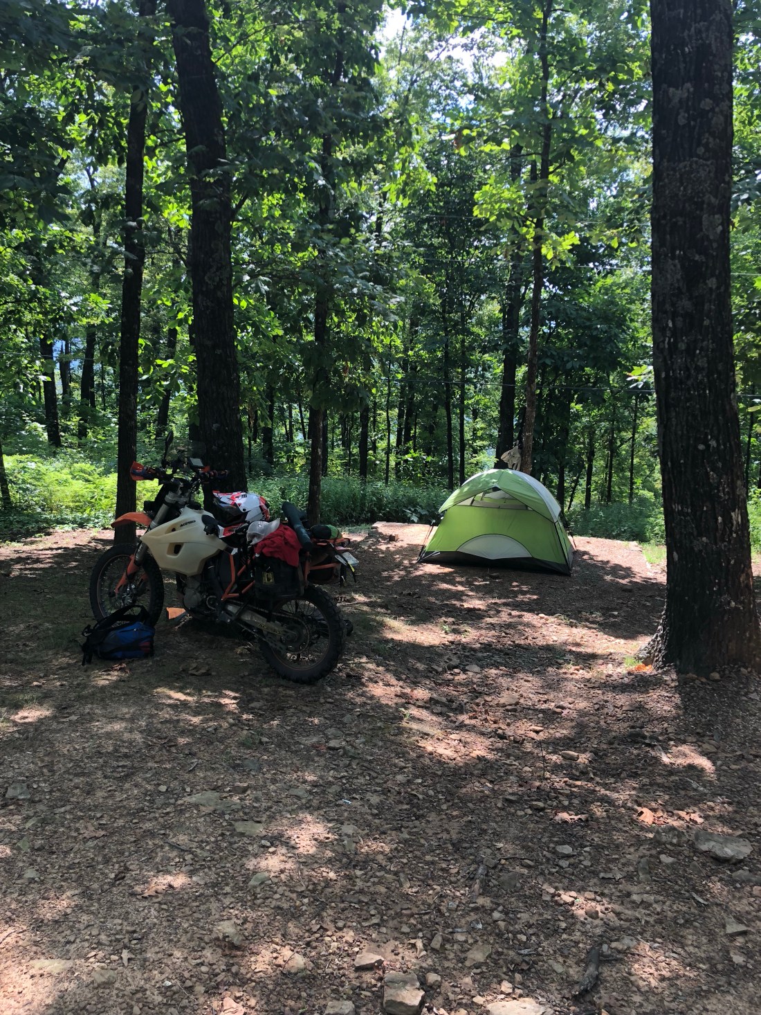 I shortened the day and finished on the top of White Rock mountain in Arkansas and set up camp. I could’ve made it to Oklahoma, but the temperature in OK would’ve been 100+ and what better opportunity to slow down and sleep at 3,000 feet.