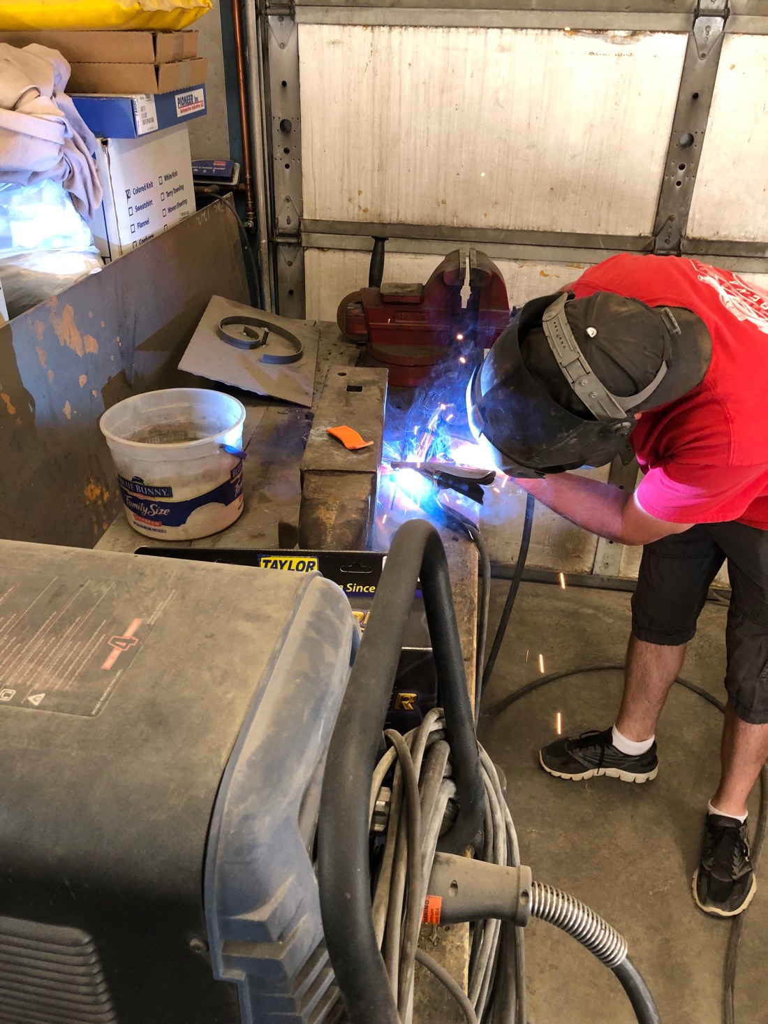 I didn’t know what to do. All the weight of my panniers was now resting on my rear fender. I had two options. Find some local who could weld my rack back together at noon on a Sunday in a town of 600 people or strap everything down and highway it to Winnemucca to find a welder. I walked across the street and sat in front of the only gas station and asked every single person that walked in if they knew of any one who could weld. I finally struck gold! A lady gave me the number of a guy named Tim Rosener who owns 4J Fabrication. His shop is behind his house and he had the rack welded back together in about 30 minutes. It was really impressive.